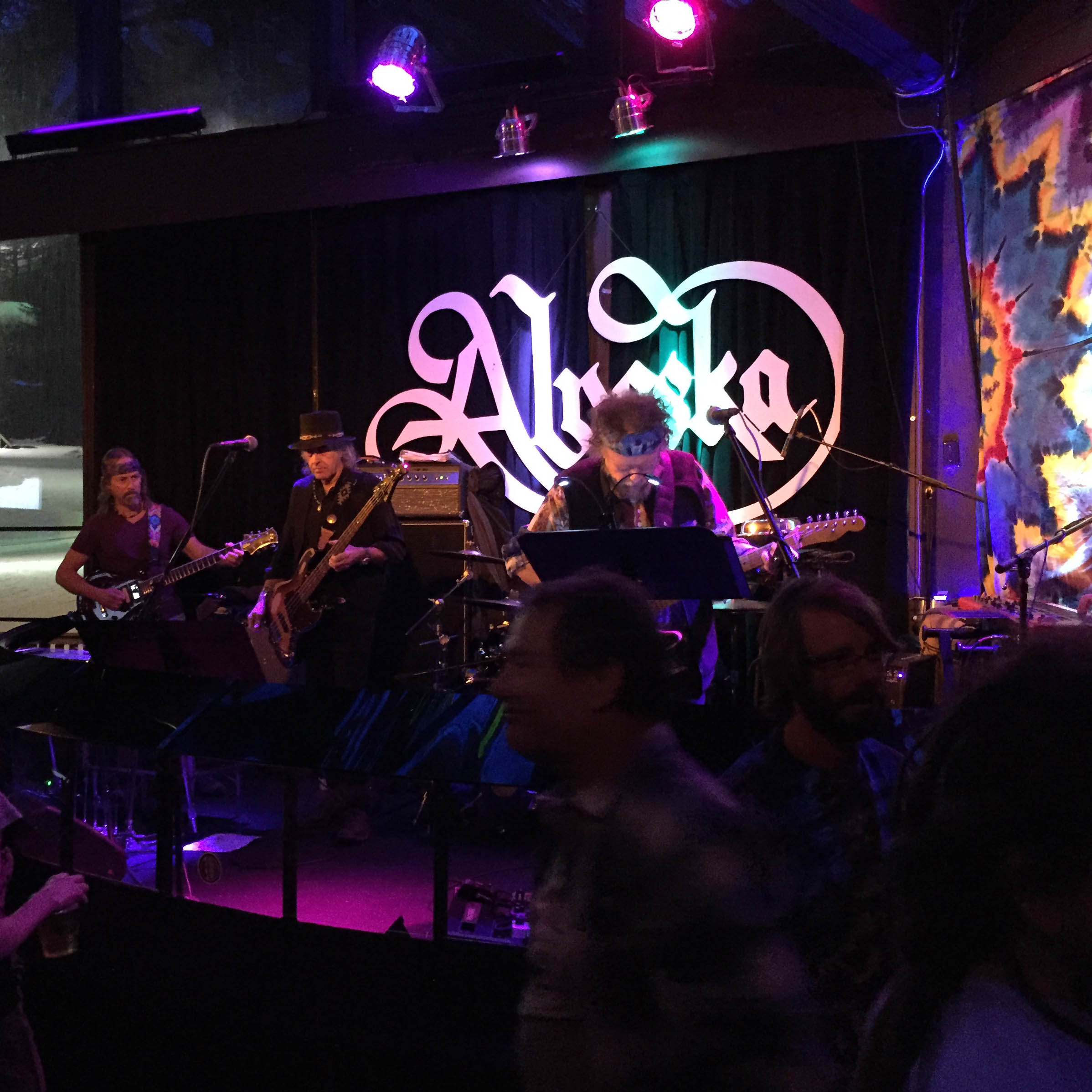 I was excited to checkout live music while on vacation, and walked across the snowy parking lot to to the bar after putting the kids to sleep. The venue was perfect for the set with tie-dyed backrounds and an amazing mural on the roof lit by stage lights. Dave Nelson was a huge part of thepsychedelic rock scene in the the 60's and 70's, playing alongside many of Grateful Dead's muscians, and founding the New Riders of the Purple Sage
